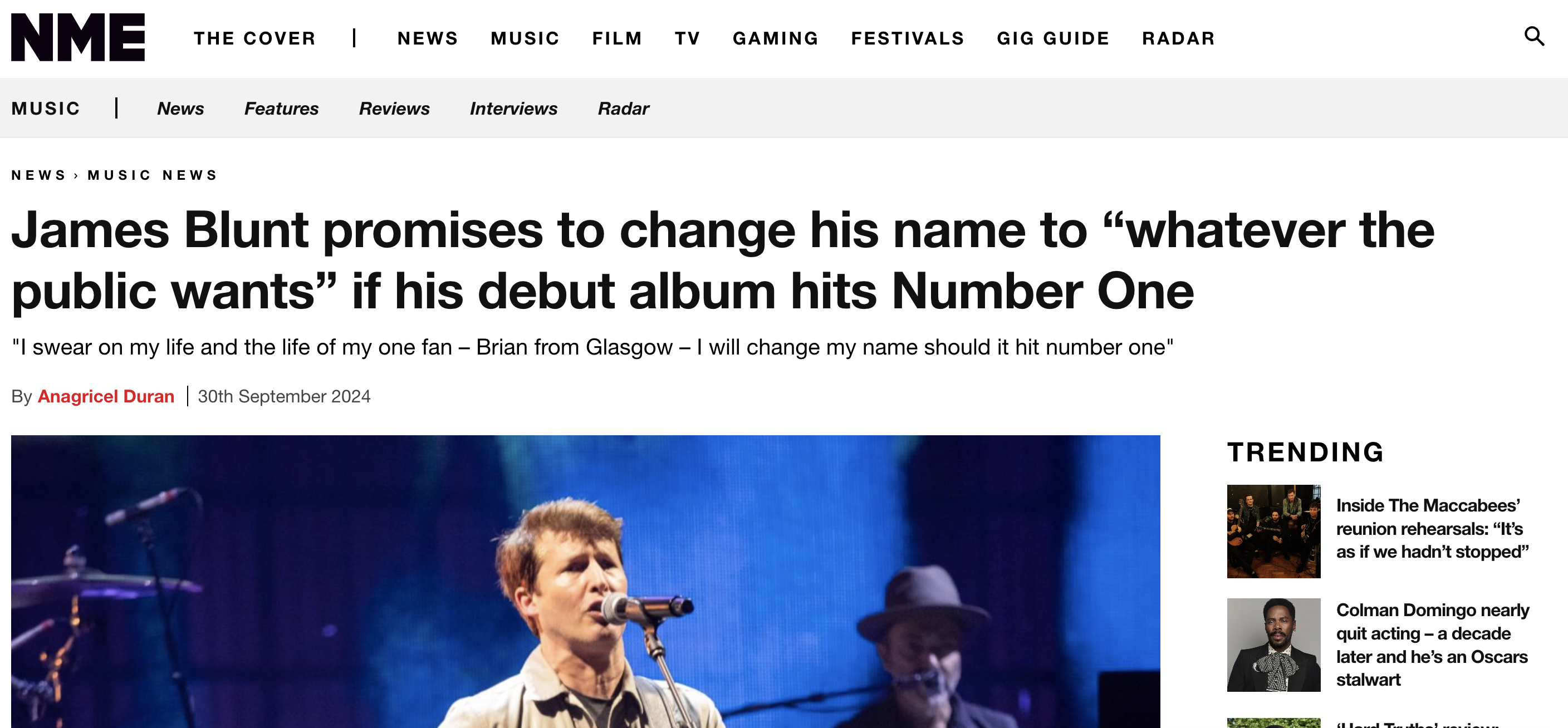 James Blunt 'Name Change' Back to Bedlam 20th Anniversary Campaign - Cannes Lion Shortlist, Music Ally 24 Winner & One Show Merit